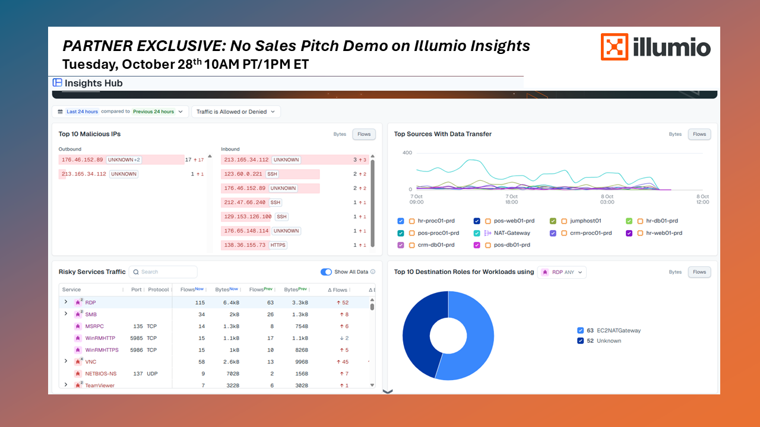 Join us on Tuesday, October 28th, at 10PT/1ET for our “No Sales Pitch Demo” of Illumio Insights, the world’s first cloud detection and response solution. Plus, all eligible partners will achieve their Illumio Sales […]